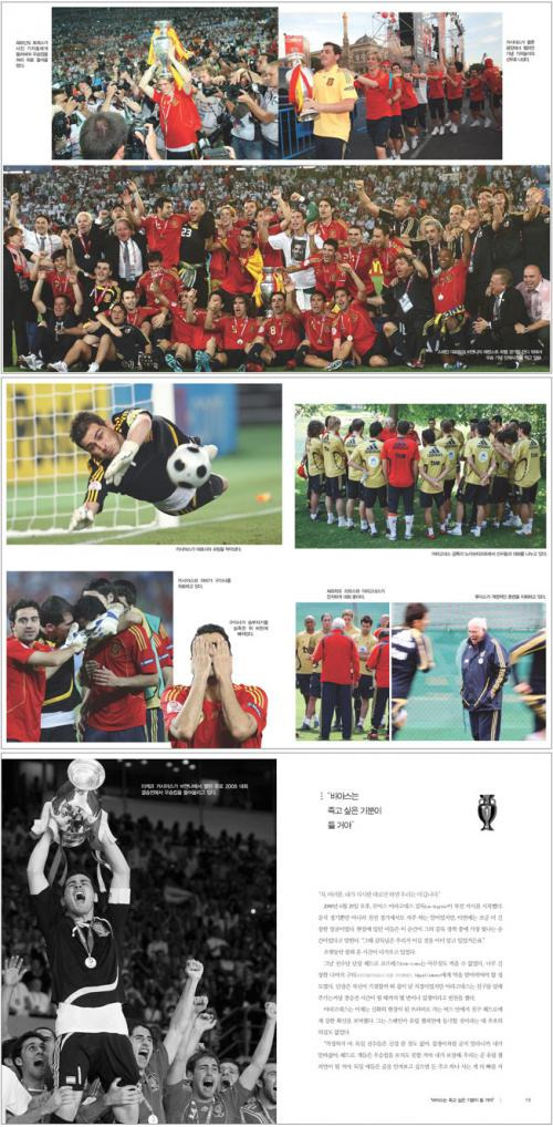 그는 이 책을 집필하기 위해 팀의 모든 선수들과 감독, 코칭스태프까지 찾아다니며 꼼꼼히 인터뷰를 진행해 팀이 우승할 수밖에 없는 이유를 발견했다. 자연스런 대화 속에 나타난 그들만의 돈독함, 경기 중 상호간 신뢰와 믿음이 그 바탕이었던 것. 저자는 생생한 인터뷰 그대로를 엮어 스페인 팀의 선수들에서부터 경기내용, 전략전술까지 살아있는 내용을 전한다. 본문 중간 중간에 들어있는 화보는 스페인 팀의 역동적인 모습을 다시 되살리고, 부록으로 담긴 캐스트롤 랭킹과 2006년 이후 스페인 대표팀의 경기 결과는 팀에 대한 흥미를 불러일으킨다. 무엇보다 주장 이케르 카시야스의 프롤로그, 다비드 비야의 에필로그를 읽으며 그들의 사인도 볼 수 있다.
